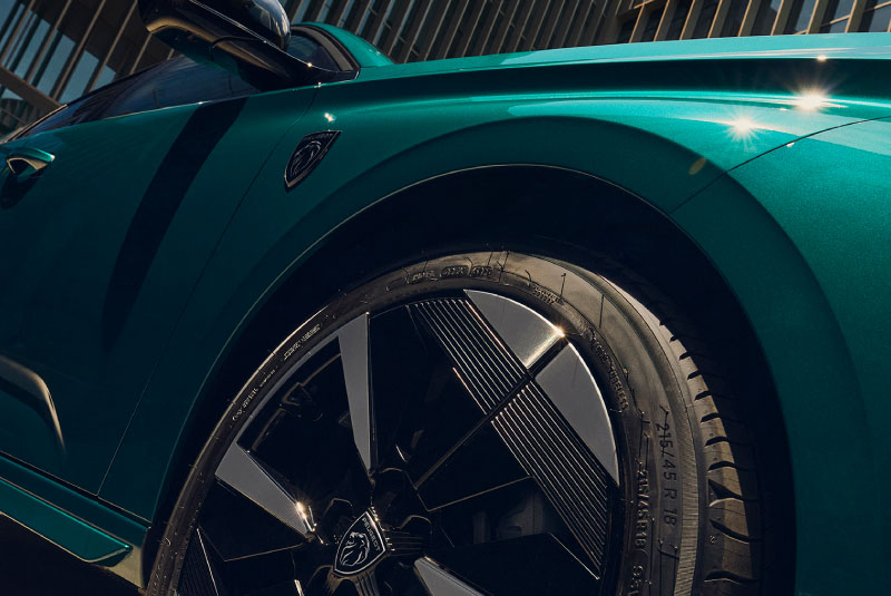 A personalidade única do Peugeot 308 é realçada pelo design frontal iluminado, que integra um conjunto de linhas e o emblema iluminados, que assumem o protagonismo da frente renovada. A assinatura luminosa conta com três finas garras LED posicionadas na zona dos faróis Matrix Led para realçar a expressividade do automóvel. A postura imponente é acentuada pelo ombro reforçado desde o início dos guarda-lamas até ao final da face dianteira, a forma trapezoidal da parte inferior do novo para-choques e as novas jantes de liga leve com corte diamantado.